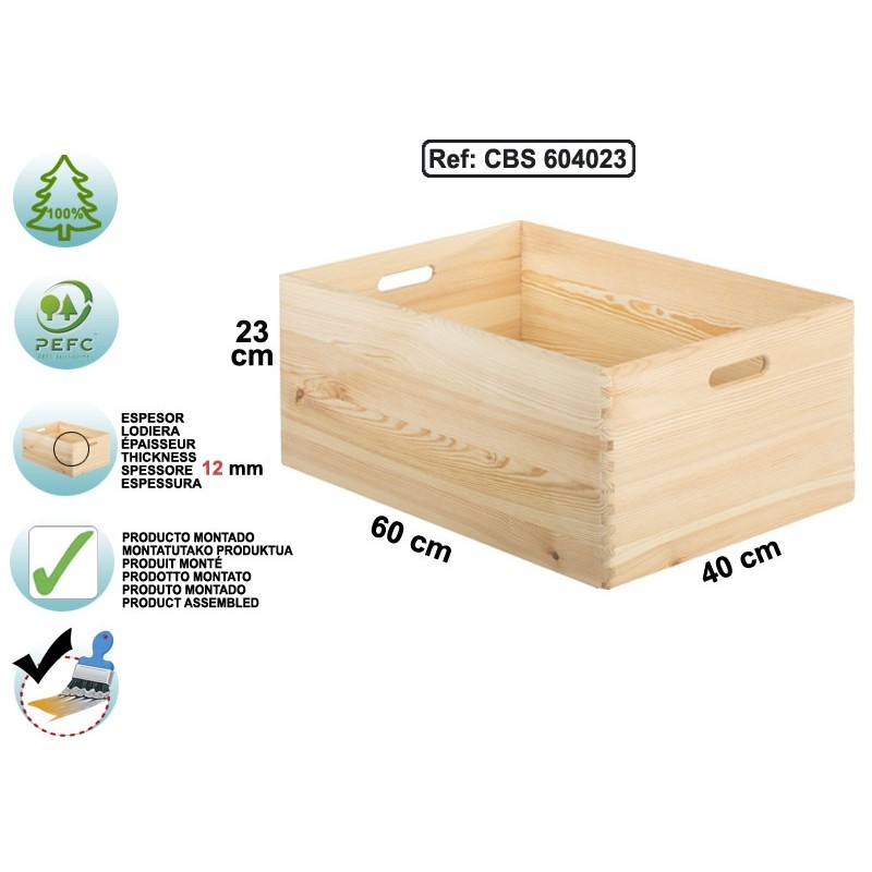 Caisse en pin massif brut qui pourra être teinter, peinte, vernie ou laissée tel quel selon vos envies déco.