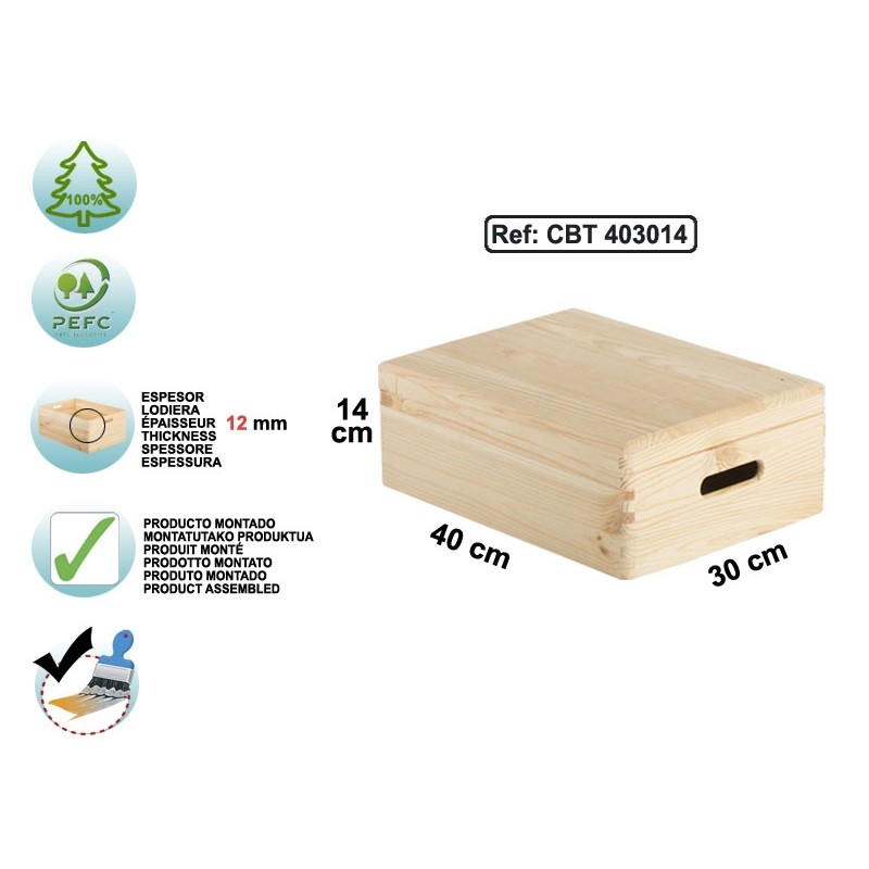 Caisse avec couvercle en pin massif brut qui pourra être teinter, peinte, vernie ou laissée tel quel selon vos envies déco.