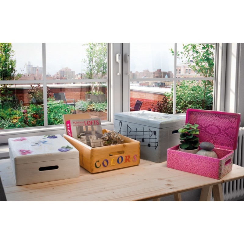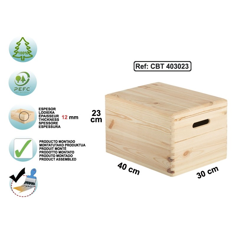 Caisse avec couvercle en pin massif brut qui pourra être teinter, peinte, vernie ou laissée tel quel selon vos envies déco.