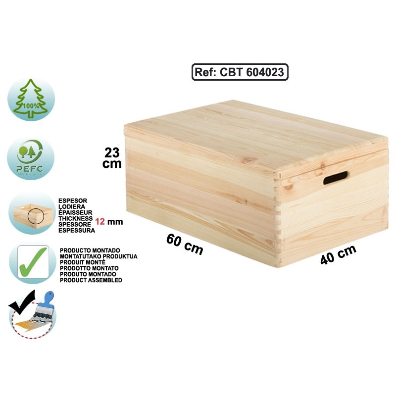 Caisse avec couvercle en pin massif brut qui pourra être teinter, peinte, vernie ou laissée tel quel selon vos envies déco.