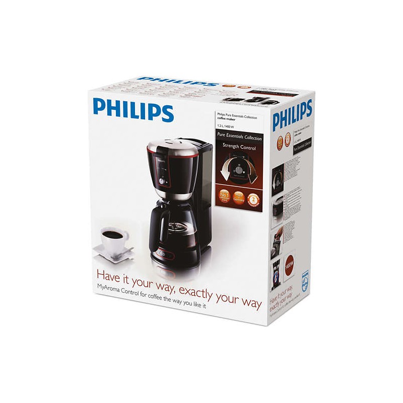 La cafetière sophistiquée Philips associe qualité des arômes et qualité de la conception. Le sélecteur d'intensité vous permet de préparer un café filtre à votre goût, grâce à l'échelle de café intégrée.