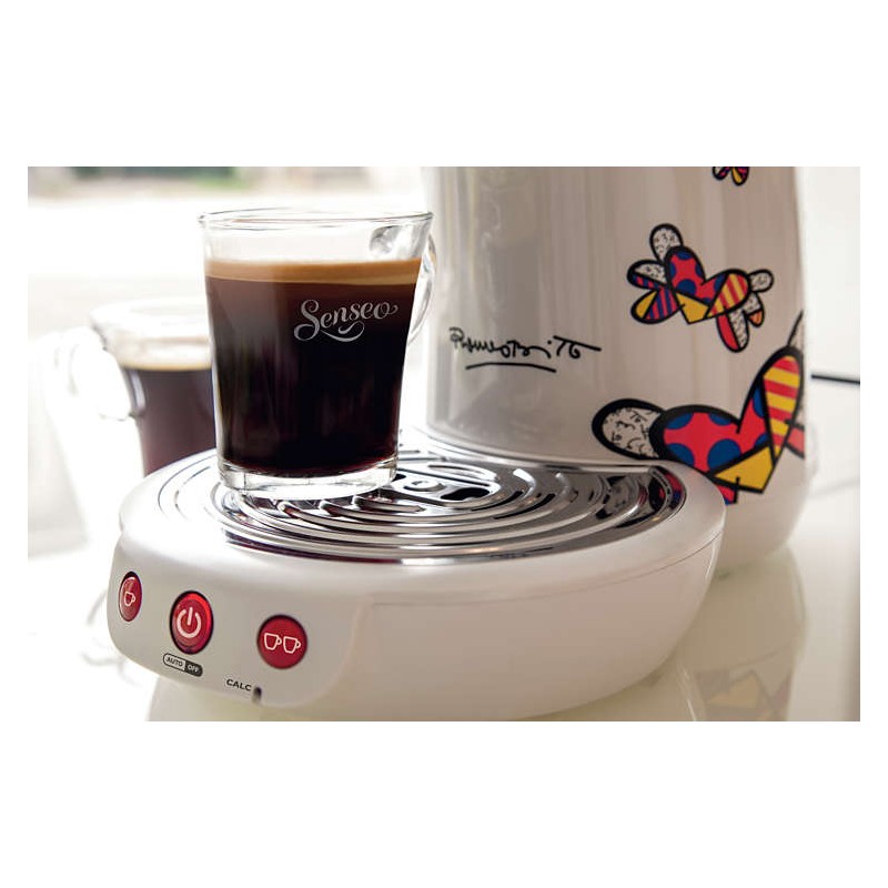 Cette année, SENSEO® s'est associé à Romero Britto pour dessiner l'édition limitée de sa machine à café. Apportez du style à votre cuisine avec ce véritable objet d'art.