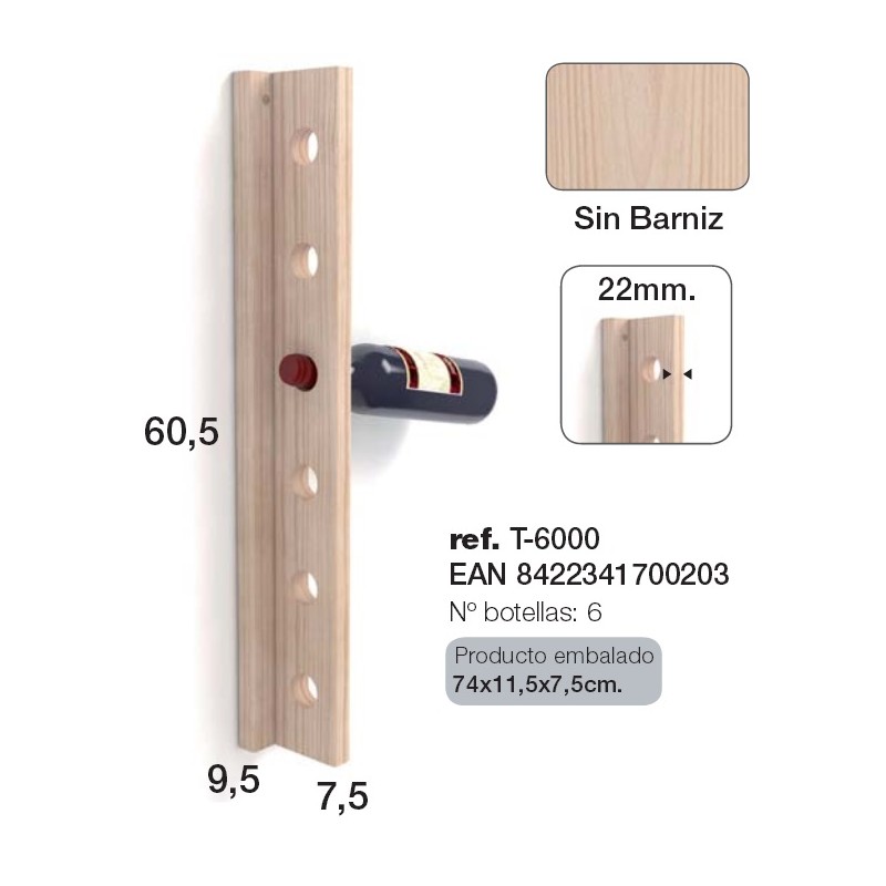 Porte-bouteilles à fixer au mur permettant de stocker élégamment 6 bouteilles.