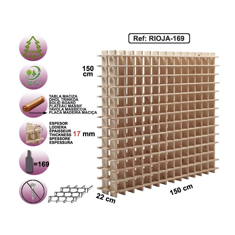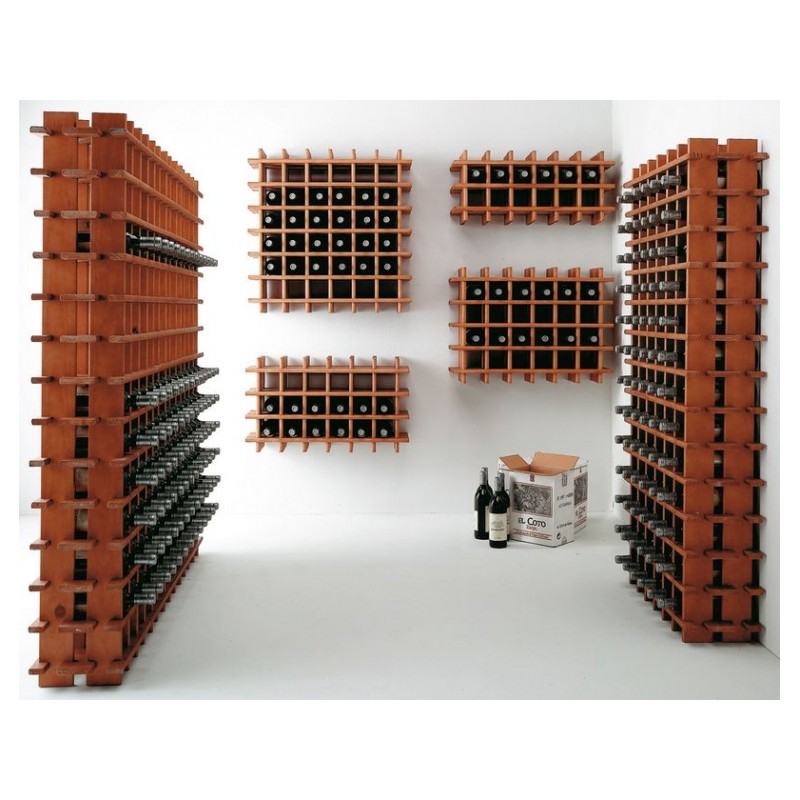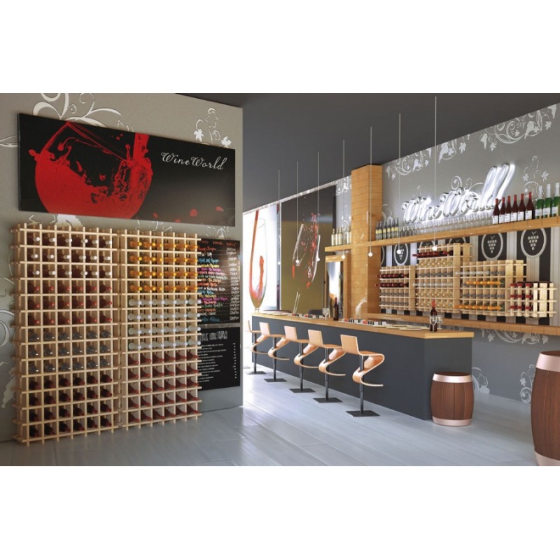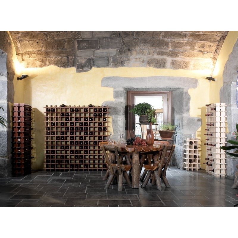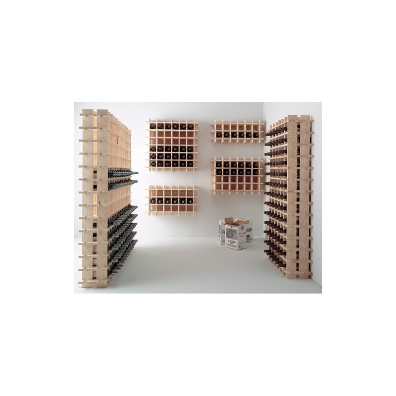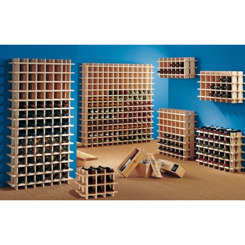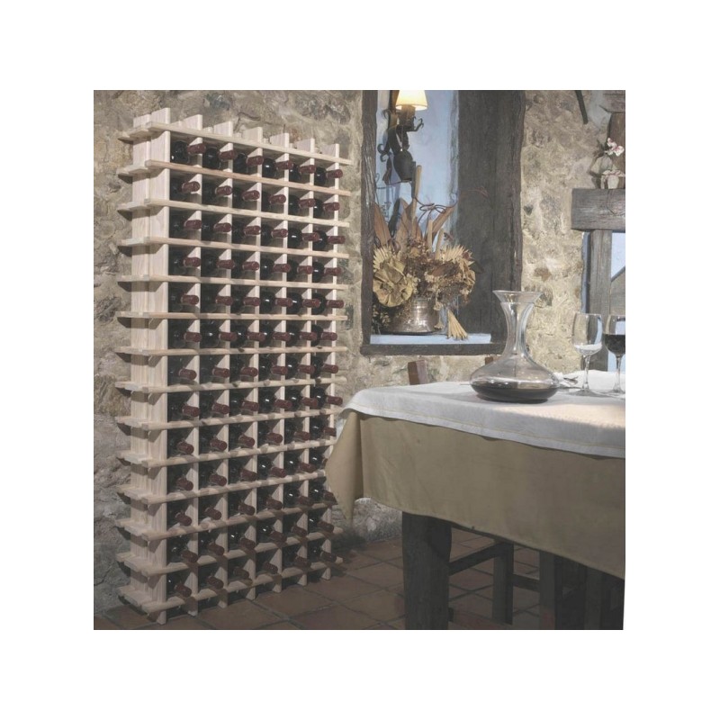 Range-bouteilles en pin massif brut permettant de stocker jusqu'à 169 bouteilles.