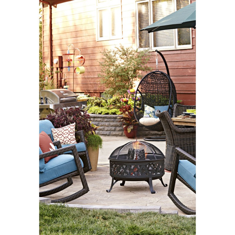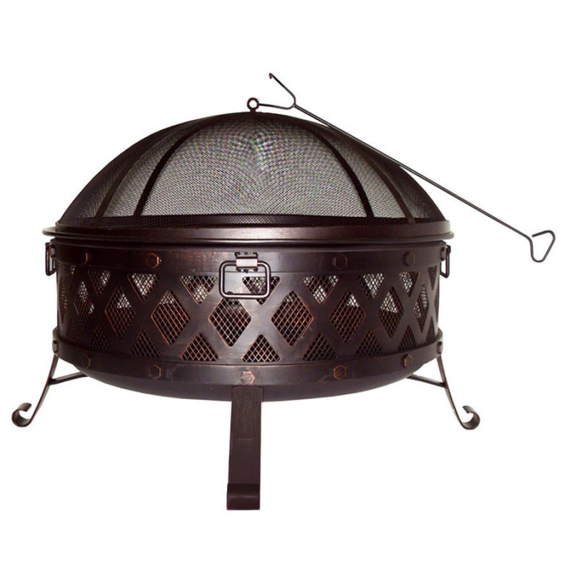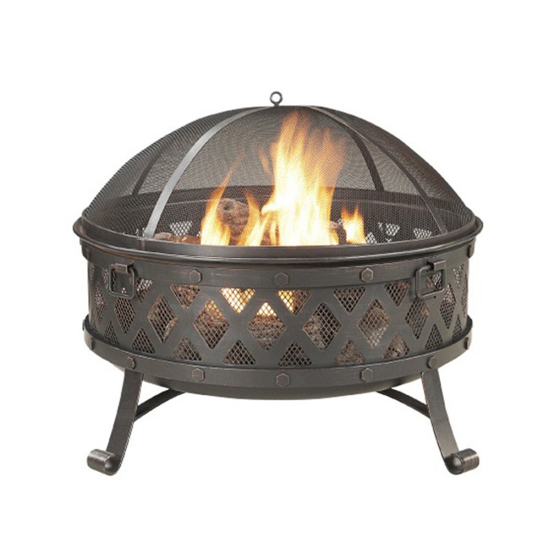 Foyer extérieur en acier. Bol de forme ronde avec peinture haute température. Pattes en acier. Écran et outil de feu inclus.